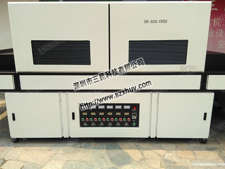 10、保证大功率uv固化机各活动部位的润滑,主被动托辊、轴承,链条和传动轮应每半年上一次黄油;其他部位及电机一年一次,前后辊、托辊和传动网咬合部分不允许使用任何润滑脂。